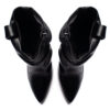 Possui fechamento em zíper lateral, que facilita o calce e garante um ajuste seguro. O solado em PVC com frisos antiderrapantes proporciona mais estabilidade ao caminhar, enquanto os adereços metalizados no cano destacam o visual da peça.