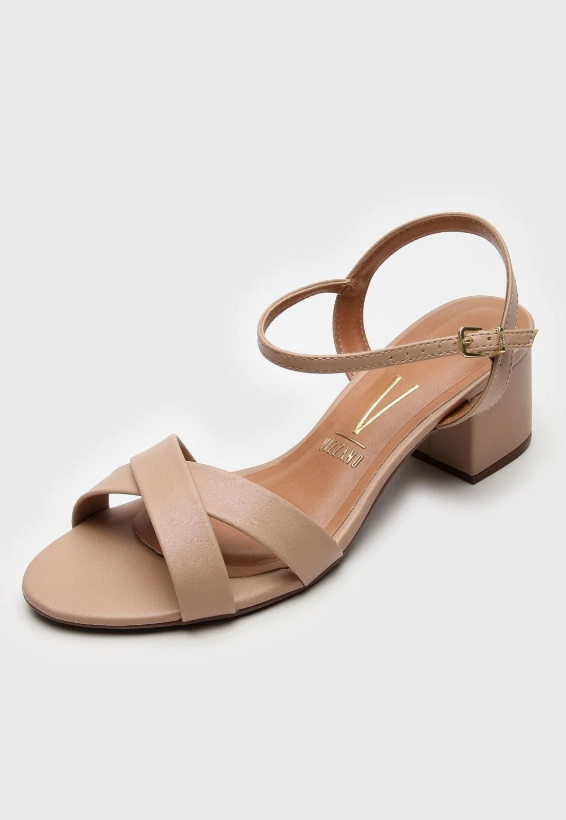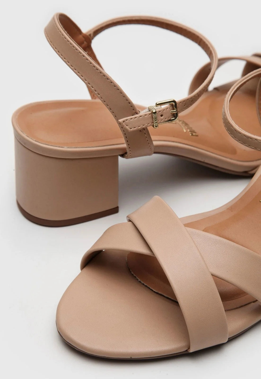 Possui detalhe em tiras transpassadas e acabamento fosco.